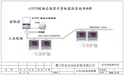 養(yǎng)護池溫度自動控制計算機監(jiān)控系統(tǒng)采用廈門宇光獨自開發(fā)的AI人工智能調(diào)節(jié)技術(shù)集合了PID調(diào)節(jié)和模糊控制技術(shù)優(yōu)點,實現(xiàn)了自整定/自適應功能。及無超調(diào)無參調(diào)的精確,調(diào)節(jié)AI-808P30段程序型人工智能工業(yè)調(diào)節(jié)器(V7.0),組建AIFCS現(xiàn)場總線型計算機監(jiān)控系統(tǒng)。