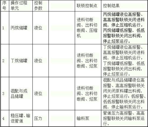根據(jù)國(guó)家安全生產(chǎn)監(jiān)督管理總局發(fā)布的中華人民共和國(guó)安全生產(chǎn)行業(yè)標(biāo)準(zhǔn)《危險(xiǎn)化學(xué)品重大危險(xiǎn)源安全監(jiān)控通用技術(shù)規(guī)范》AQ3035-2010和《危險(xiǎn)化學(xué)品重大危險(xiǎn)源罐區(qū)現(xiàn)場(chǎng)安全監(jiān)控裝備設(shè)置規(guī)范》AQ3036-2010的要求,本設(shè)計(jì)對(duì)成品儲(chǔ)罐和原料儲(chǔ)罐壓力進(jìn)行顯示、記錄和超限報(bào)警,對(duì)成品儲(chǔ)罐和原料儲(chǔ)罐液位進(jìn)行顯示、記錄、超限報(bào)警和連鎖,對(duì)過(guò)濾器組進(jìn)出口壓力、混料泵出口壓力、卸車(chē)進(jìn)出口壓力、輸送緩沖罐、輸送泵壓力進(jìn)行顯示、記錄和超限報(bào)警,對(duì)氣霧劑輸送管道壓力進(jìn)行顯示、記錄、超限報(bào)警和連鎖。