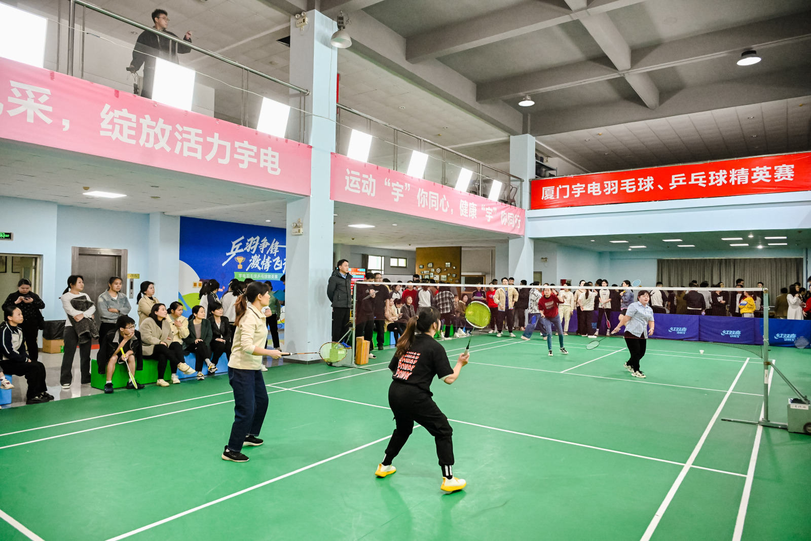 賽場顯身手,健兒爭榮耀。2025年元旦,正逢冬日暖陽天,“乒羽爭鋒,激情飛揚”宇電精英球賽拉開帷幕。參賽員工活力四射,啦啦隊熱情洋溢,有對抗、有激情、有溫度。宇電新年運動盛會 火熱上演啦! 2025 年宇電元旦“迎新”運動會熱情開燃 新年第一天,宇電人最愛的兩個項目——乒乓球單打、羽毛球雙打同時火熱開賽。裁判和參賽人員就位后,比賽正式開始!強(qiáng)者爭鋒誰可奪魁?快隨我們一起欣賞選手們的熠熠風(fēng)采吧!2025 宇電運動會精彩現(xiàn)場自2006年喬遷宇電科技大廈,宇電每年都會舉辦乒乓球、羽毛球賽。今年,活動現(xiàn)場更加火熱。比賽掀起陣陣熱潮,掌聲、吶喊聲此起彼伏。【羽毛球比賽現(xiàn)場】比賽正式開始后,參賽運動員們個個精神抖擻,目光堅毅緊盯著來回穿梭的羽毛球。搓球、撲球、吊球、扣殺!運動員們紛紛亮出 “拿手” 球技,比技巧、拼體力各展其能、釋放出強(qiáng)勁實力。每一次攻防換位,隊友都是彼此堅強(qiáng)的保障,每一場比拼都是