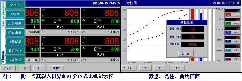 在顯示屏上模擬開關(guān)、按鈕、指示燈動(dòng)畫、趨勢曲線、調(diào)節(jié)棒圖等。具有操作控制、狀態(tài)監(jiān)控、數(shù)據(jù)存儲、報(bào)表打印、無紙記錄儀通過網(wǎng)絡(luò)RS485通訊與計(jì)算機(jī)組建監(jiān)控系統(tǒng),每通道數(shù)據(jù)刷新時(shí)間50毫秒;